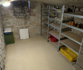 Do domu se vchází ze dvora vstupní chodbou, vpravo se nachází obývací pokoj a kuchyně s okny do ulice, další vstup vpravo je do ložnice s okny do ulice, z chodby vlevo se vchází do koupelny, v levé části domu se nachází samostatné WC a pokoj s výhledem a výstupem do dvora. Koupelna je prostorná, vybavená vanou, sprchovým koutem, dvěma umyvadly, WC a bidetem. Kuchyňská linka na míru je vybavena vestavnými spotřebiči.